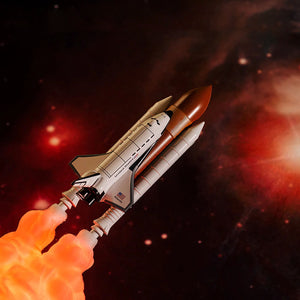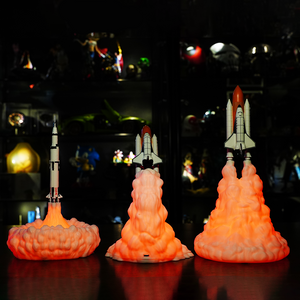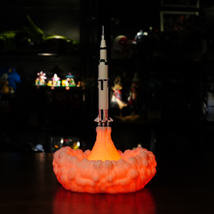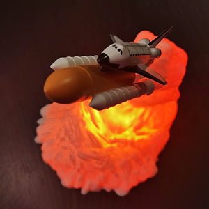 Take a closer look at the lamp, and you'll discover that the light perfectly simulates rocket launch, with the flames shining bright or dim depending on the brightness levels, which can be adjusted from dim to bright with a one-button switch.