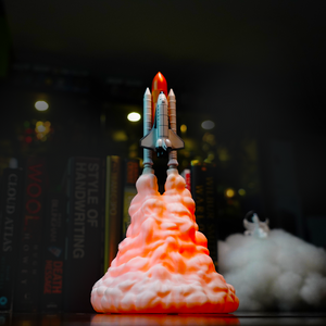 Blast off into space with this fiery scene of a rocket taking off. This Space Shuttle Lift-off Lamp, created with 3D printing technology, is based on images of actual space shuttles being shot off into space.