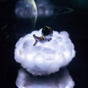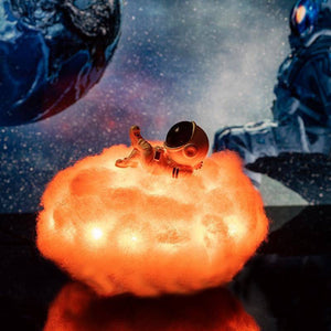 This scene of an astronaut relaxing on top of a fluffy cloud that changes light color will bring a smile to your face.